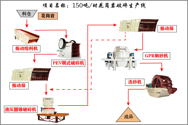【案例分享】150噸/時(shí)花崗巖破碎生產(chǎn)線(xiàn)方案