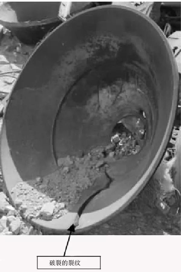 2.襯板安裝時填料沒有充分混合攪拌均勻,充填強度偏低,導(dǎo)致破碎時襯板破裂。